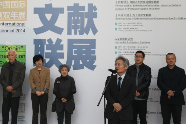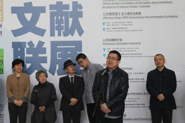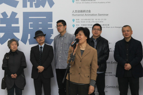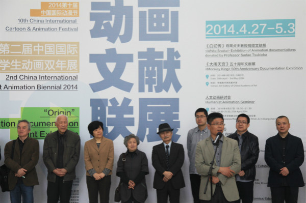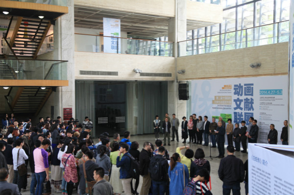 4月28日,2014第二届中国国际大学生动画双年展暨国际动漫教育高峰论坛在中国美术学院美术馆开幕。我院党委书记钱晓芳,党委委员、传媒动画学院院长刘正,院长助理杭间,日本东京宝冢大学动画部月冈贞夫教授,老动画艺术家、上海美术电影制片厂前厂长严定宪先生及夫人林文肖女士,北京电影学院中国动画研究院副院长曹小卉教授、中国美术学院外事处处长、国际教育学院副院长金志林及传媒动画学院教师、法国驻上海领事馆工作人员及法国动画艺术家代表共同出席开幕式。