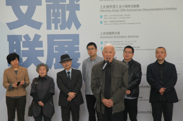 4月28日上午,由中国国际动漫节执委会与中国美术学院共同主办的动画历史文献联展在我院美术馆拉开帷幕。此次文献展正值《大闹天宫》五十周年之际,特设了《大闹天宫》五十周年纪念展,并邀日本月冈贞夫教授开设了个人收藏展。展览揽括了张光宇先生《西游漫记》的设定手稿、从导演到配音等制作人员生平、后续发展等珍贵历史文献资料。活动还力邀曾参与《大闹天宫》中大部分孙悟空动画绘制的前美影厂厂长严定宪老先生及其夫人、同时亦参与了该中七仙女等动画绘制的林文肖女士,美影厂老前辈矫野松先生、杨素英女士等动画前辈参与。这次盛会,既向老一辈动画艺术家致敬,同时也祝福中国动画事业在以后的道路上大步前进。