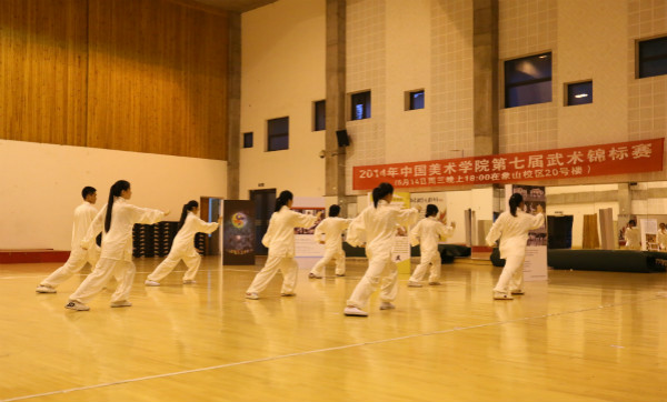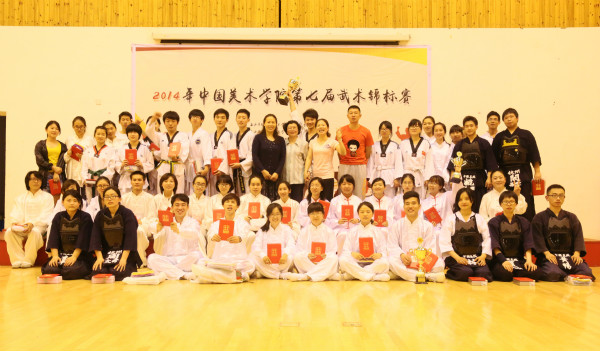 5月14日晚,来自我院各院系的各路武林高手齐聚象山论剑,拉开中国美术学院第七届武术锦标赛战幕,经过一个多小时的激战,比赛圆满落幕。中国美术学院武术协会主席邵灵侠、中国美术学院体育部主任张杰教授出席赛会评委,同时为获奖队团体及选手颁发奖杯,证书及奖品。
