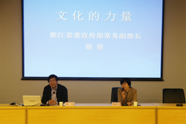 省委宣传部常务副部长胡坚以《文化的力量》为题为青年教师作专题报告,院党委书记钱晓芳主持。
