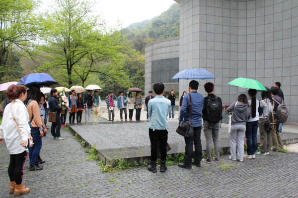 会结束后,与会师生赴到潘天寿先生和夏朋烈士墓,进行了祭扫和缅怀。杭州市园文局工作人员一起参加了祭扫活动。