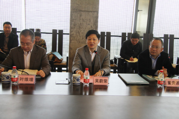 吴蔚荣代表台州市委市政府对我院的关心、支持与帮助表示感谢。他说,台州市高度重视本次战略合作,植物(雕塑)园是校地合作的首个项目,是战略合作的一个重要切入点。他希望美院能够充分发挥专业优势,真正地把它打造成集生态保护、旅游休闲、文化展示等功能为一体的城市精品项目,更好地彰显台州山水特色和文化韵味。