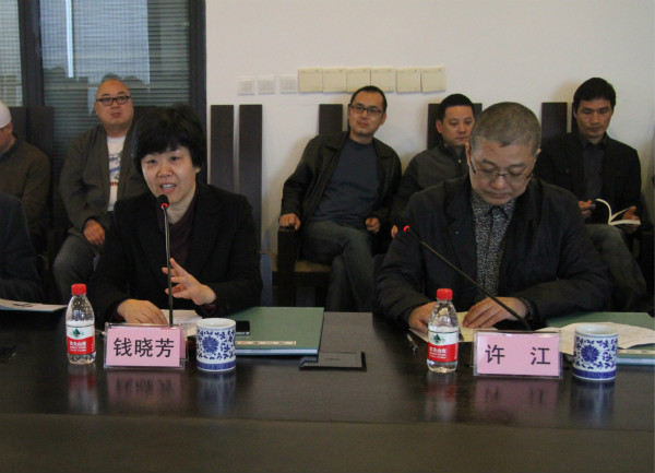 党委书记钱晓芳主持会议,院长许江在会上讲话