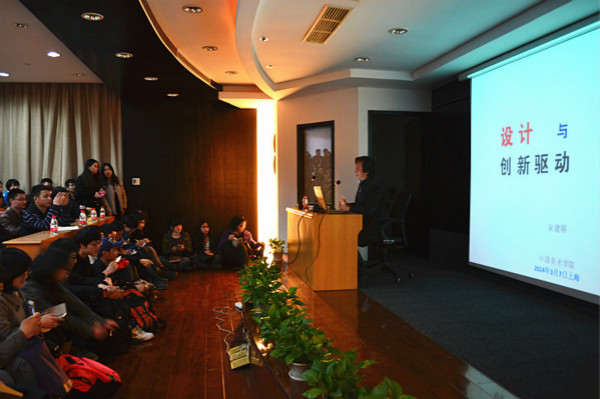 在讲座一开始,宋老师为在座的师生从政策、科技、经济的角度分析了如今设计学科发展的形式,这引发了在座听众的一系列自省:“我了解国家对文化产业的政策吗?”,“我准备好适应大数据时代了吗?”,“在如今的经济情况下,我们该怎么做设计?”。