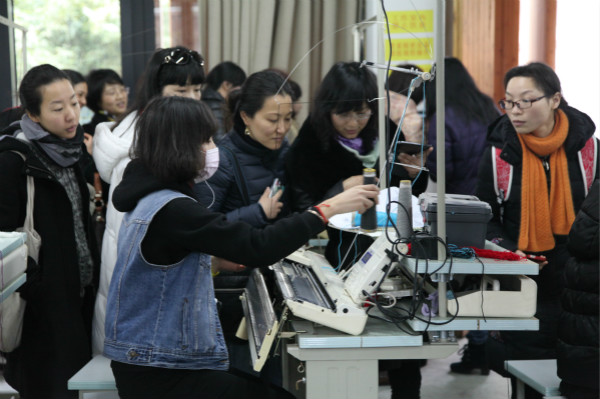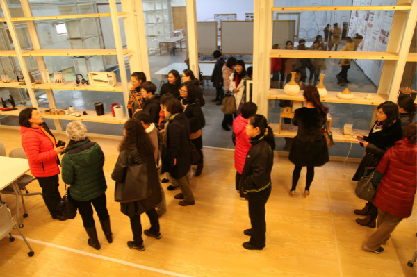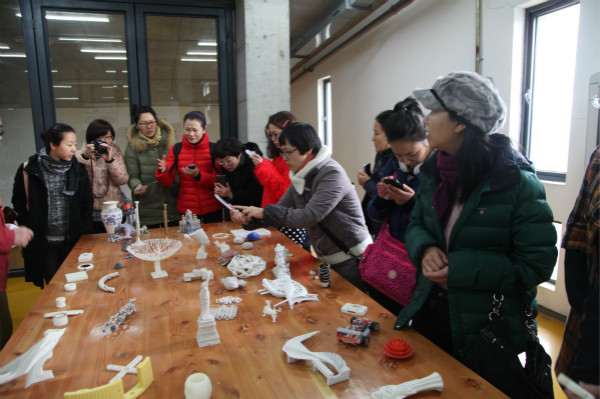 活动于下午一点正式开始,女教职工们脸上洋溢着节日的喜悦,走进了象山校区各实验室,先后参观了扎染实验室、针织梭织实验室、学院示范实验中心2011协同创新中心、公共艺术学院雕塑大厅和热成型实验教学大楼。在设计艺术学院实验室里,在朱辛伟和刘芳老师的演示下,大家对扎染和针织梭织艺术惊叹不已,纷纷感叹其神奇并跃跃欲试想亲手体验;在公共基础实验中心参观了金工木工实验室和复合材料成型实验室,对当下前卫的3D打印技术表现出了异常浓厚的兴趣;在传媒动画学院观看了3D电影,逼真的影视特效加上惊心动魄的音效有如身临其境,接着又聆听了由实验中心主任林勇老师主讲的3D音效音乐赏析讲座,立体环绕的音效震撼人心;在公共艺术学院热成型实验教学大楼,周武和戴雨享老师带领高年级学生亲自指导大家进行陶艺体验,大家在观摩、和泥、拉坯中欢声笑语一片,尽情享受着动手制作陶艺的乐趣。参加活动的每位女教职工都收到了一对学院为女教职工专门定制的手工陶艺杯。