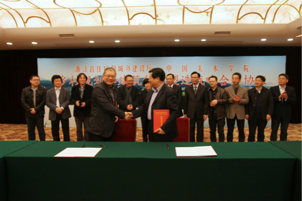 随后,省建设厅厅长谈月明与我院院长许江代表双方签署战略协议。据悉,这是省建设厅与我院深入贯彻中央城镇化工作会议和农村工作会议精神,切实发挥村庄规则设计的引领支撑作用,全面扎实推进全省美丽宜居示范村镇建设的一项重要举措。