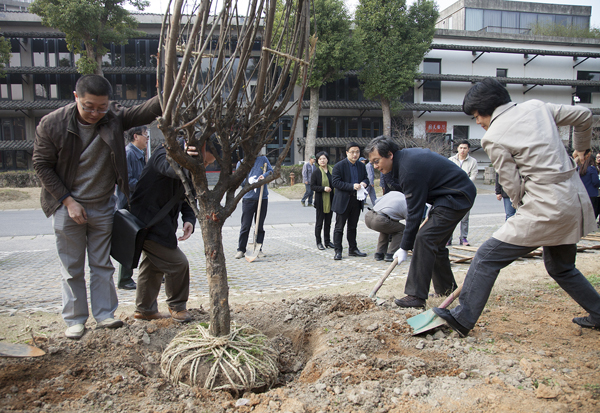3月17日上午,学院在象山校区开展了“植树造林美化校园,创建绿色生态和谐校园”的活动。学院党委班子成员钱晓芳、许江、宋建明、胡钟华、孟云生、刘正、姜玉峰以及院办、校园建设和管理处、团委(学生会)等四十余人参加了植树活动。