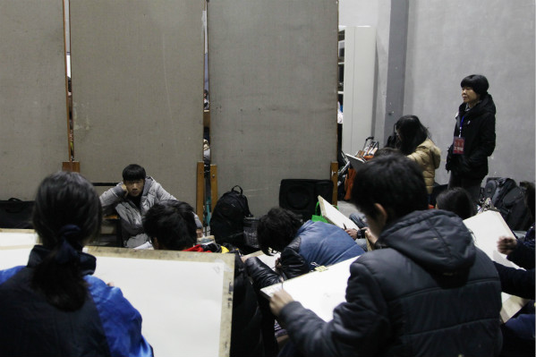 2月15日-17日,包括杭州、北京、沈阳、郑州、广州、成都六个考点在内的2014年本科招生专业考试顺利结束。今年的考试内容,稳中有变,尤其是色彩采用了彩色人物头像写生,被王赞副院长称为“目前美院招生考试中级别最高难度最大的考试方式”,希望考生进一步加强“型”和“色”基础能力的训练,拒绝速成急训,选拔优秀考生。