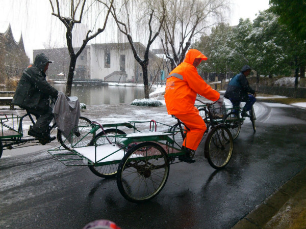 2月18日,正当全力清理考场之时,巧遇一场大雪,公司迅速启动应急预案,合理调配人员积极应对,对部分出入口铺设草垫,部分路段撒了工业盐,并组织人员打落树上积雪,保障了学院财产,保证了师生出行安全。