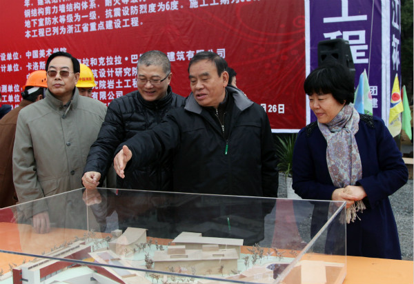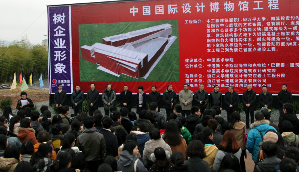 2月26日上午,中国国际设计博物馆在我院象山校区开工。全国人大财经委员会副主任委员吕祖善、杭州市政协主席叶明、浙江省教育厅工委副书记鲍学军、浙江省重点办主任张金强、浙江省财政厅教科文处处长金涛、西湖区之江管委会副书记叶伟平、建筑设计师代表、阿尔瓦罗·西扎的助理建筑师卡洛斯、浙江省一建建设集团有限公司董事长崔俊、浙江求是工程咨询监理有限公司总经理晏海军以及我院党委领导班子成员钱晓芳、许江、宋建明、胡钟华、孟云生、孙旭东以及院长助理兼中国国际设计博物馆馆长杭间等人出席了开幕式。开幕式由我院副院长孟云生主持,崔俊、晏海军、许江分别致辞,吕祖善宣布了中国国际设计博物馆项目正式开工。
