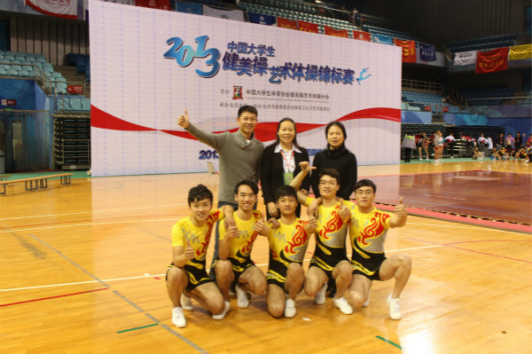 12月18日至23日,由中国大学生健美操艺术体操协会(简称CSARA)主办、北京市教育委员会体育卫生与艺术教育处协办的2013年中国大学生健美操艺术体操锦标赛在北京大学举行。来自设计艺术学院的高培鑫、高长乔和王鑫茁,传媒动画学院的刘金和建筑艺术学院的李瑞组成的我院竞技健美操队获得健美操大学规定动作组男子五人操亚军的优异成绩,并被授予“优秀团队奖”,同时体育部任勇教师荣获 “优秀教练员”称号。