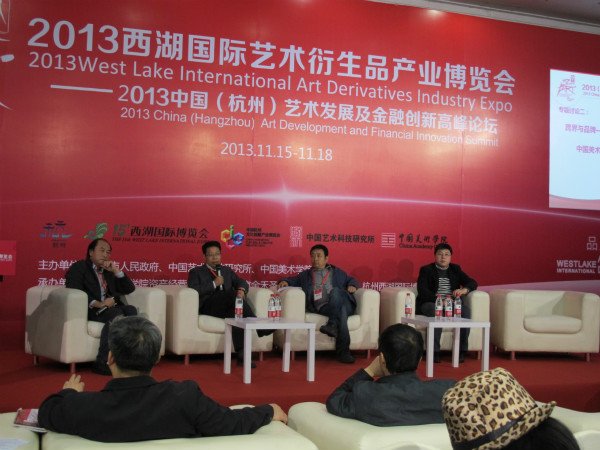 11月15日—18日,2013西湖国际艺术衍生品产业博览会暨敦品四季·秋季艺术衍生品展在浙江世贸国际展览中心顺利举办。在同期举办的2013中国(杭州)艺术发展及金融创新高峰论坛上,中国美术学院党委副书记、资产经营公司董事长傅肃琴作开幕致辞,资产经营公司总经理余伟忠、设计艺术学院副院长周刚、造型艺术学院油画系教授井士剑作为演讲嘉宾出席。