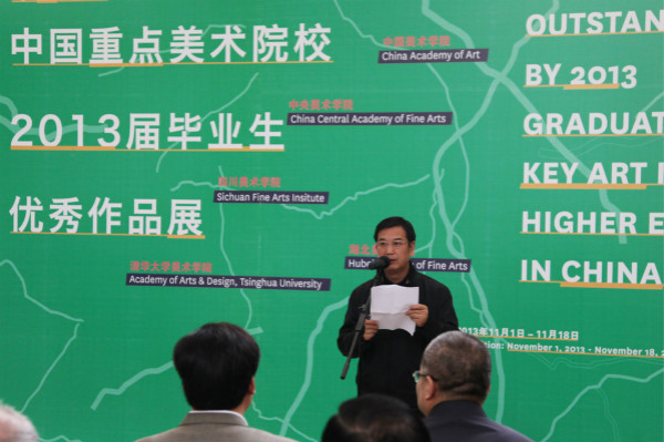 11月1日,“千里之行·2013全国重点美术院校毕业生优秀作品展”在我院美术馆拉开帷幕。浙江省教育厅副厅长鲍学军,中央美术学院党委书记高洪,中央美术学院院长潘公凯,中国美术学院院长许江,西安美术学院副院长贺丹,天津美术学院纪委书记李炳训,广州美术学院副院长吴卫光,四川美术学院副院长张杰,鲁迅美术学院副院长李宝泉、及云辉,湖北美术学院副院长许奋,清华大学美术学院副院长张敢,九大美院教务处领导,毕业班指导老师、相关部门负责人及学生代表一起参加了开幕式。开幕式由我院副院长王赞主持。开幕式上,
