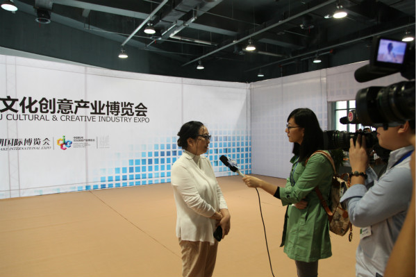 设计艺术学院院长吴海燕正接受媒体采访