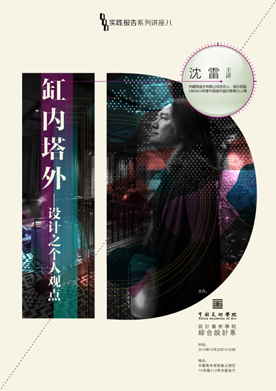 “玉不琢,不成器;人不学,不知道。” 2013年10月22日下午13:30,由中国美术学院设计艺术学院主办,综合设计系承办的“实践报告”系列讲座第八讲在象山校区十八号楼312学术报告厅举行。讲座是由现任杭州内建筑设计有限公司合伙人、设计总监、高级室内建筑师以及英国注册建筑师的沈雷主讲,担任学术活动主持的是综合设计系主任成朝晖教授。
