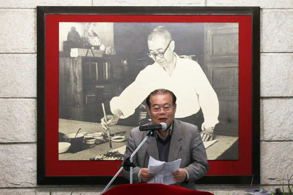 许江在致辞时用做人的“强其志”,从艺的“强其骨”,诗人的“强其心”概括潘天寿先生的人格。他说:潘天寿先生是一个非常高大的人,是一个有性格的人,是一个严厉的人。在他身上“强”(强悍、倔强)这个字,是他的化身。首先,他做人“强其志”,他有很高的志向,所以才会在最早的中西交流当中,感受到中国绘画面临的危机,在担任院长时建立了中国画系的人物、山水、花鸟分科,强调临摹和了解中国传统的技艺和精神的教学传统,奠定了中国美术学院继承传统的教学的高峰。其次,他的艺术“强其骨”,他的那些大画,那些钢筋铁骨一般的线条,那些奇险的布局,都体现了这种“强其骨”、“一味霸悍”。第三,他的诗文“强其心”。他是一个了不起的诗人,很少有诗人像他那样沉郁地描写自己的内心,描写自己的生活,这些诗令我们感动。