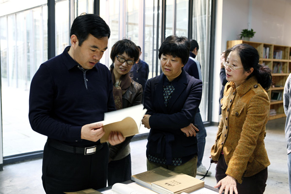 谢新松对我院近几年在宣传文化工作方面取得的成绩给予了充分肯定,对我院明晰的办学思想和学术追求表示认同,对学院立足专业特色开展校园文化建设,打造环境文化、讲坛文化、典礼文化、校史文化、实践文化、创意文化的做法,给予了高度赞扬。他说:“中国美术学院的校园文化活动多姿多彩,做到了融思想性、知识性、娱乐性于一体。”他尤其褒扬了学院原创性的校园文化活动,认为很受启发,很震撼。谢新松一行还参观了包豪斯藏品馆。