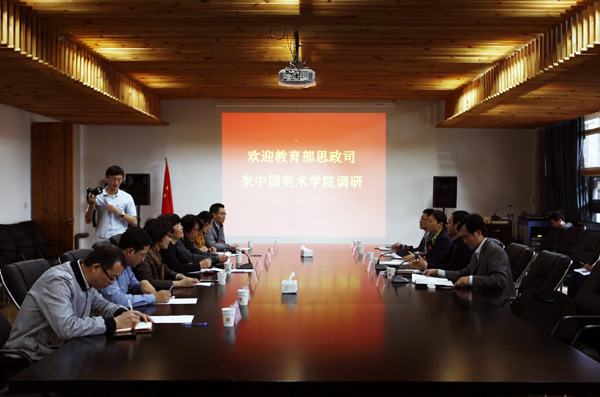 10月29日下午,教育部思政司副司长谢新松、干部王雁鹏、张志军、高等教育出版社社政中心首席编辑洪傲、浙江省委教委宣教处副处长吴振辉一行,来我院专题调研宣传文化工作。