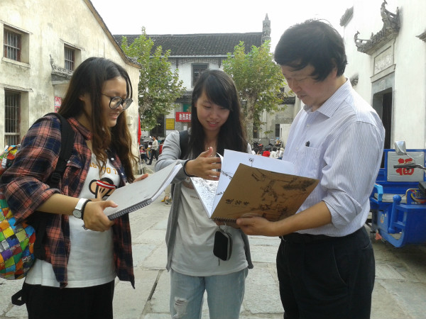 10日下午,不顾上半天的旅途疲惫,副院长孟云生直赴宏村进行现场查看和指导。建筑艺术学院此次宏村下乡教学实践的是2013级建筑四年的48名学生和两名带队老师。由于学生是分组实践,写生场地分布多处,孟云生就环绕全村逐组看望。他认真查看了学生的写生作业并提出指导建议,他提醒学生要服从带队老师的领导,团结同学,认真完成下乡实践的教学任务。当看到宏村有来自全国各地的众多美术学子,看到街边摊店熟食露天摆放,他就一再叮嘱学生要注意随身财物安全和饮食安全并要求带队老师再次给学生强调安全教育。