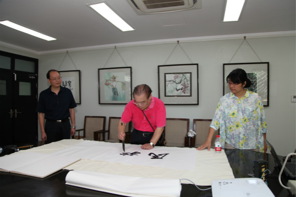 9月24日上午,中宣部原常务副部长龚心瀚、《百年巨匠》制片人北京银谷艺术馆馆长杨京岛、《百年巨匠》总撰稿刘传铭一行三人在我院党委副书记胡钟华的陪同下,参观了潘天寿纪念馆,并参加了“潘天寿美术教育文献展”开幕式。