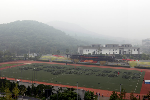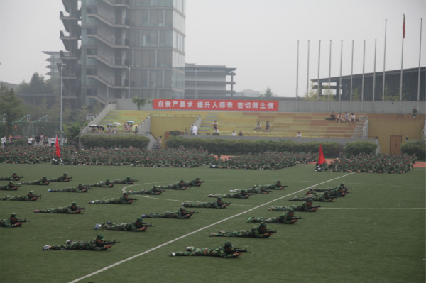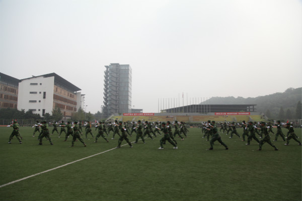 阅兵式上,军训团政委、党委副书记胡钟华讲话。他充分肯定了参训同学在军训中取得的优异成绩,并对担任本次军训工作的73022部队的教官及所有参与军训的工作人员表示感谢。他介绍了我院85年来光荣的革命传统和独特的学院精神。他说,经过10天的骄阳曝晒和风雨洗礼,我们欣喜地看到,同学们不仅在体能体魄、队列动作、军事技能方面有了明显提高,在精神面貌、意志品格、作风素质方面也有了长足进步。同学们已经养成了团结互助的和谐氛围;培养了服从命令、听从指挥的良好作风;树立了顽强拼搏、勇争第一的进取精神;增强了集体荣誉感和爱国爱校的宝贵品质,这一切都是军训给我们每一个同学留下的一笔宝贵的精神财富。值此85周年校庆之际,大家都用实际行动秉承了中国美术学院提倡的“使命感”、“责任感”、“创新精神”。他向新生提出三点希望:第一、希望同学们能在今后的学习生活中继续保持军人作风和意志,严格要求自己,以饱满的精神和不服输的志气投入到学习和艺术创作中去;第二、希望大家在美院这个自由、浓厚的文化环境中,树立远大的理想,弘扬爱国主义精神,继承和发扬美院的使命和创新精神,在湖山的望境中陶冶自己的艺术修养和品格,争做一个有道德、有责任感的、德艺双馨的艺术工作者;第三、希望大家珍惜青春,脚踏实地,奋力拼搏,读书养心,劳作上手,在实践中成长、在磨炼中进步,在服务国家和社会发展的过程中尽情展露自己的才华。