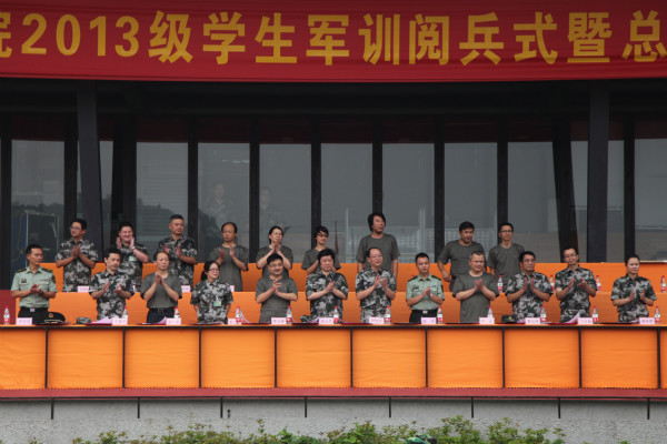 9月13日上午,2013级新生军训阅兵式暨总结表彰大会在象山校区运动场举行,军训团政委、党委副书记胡钟华,副院长孟云生、党委委员、传媒动画学院院长刘正,党委委员、组织人事部长姜玉峰,73022部队副政委钱波、学生军训团团长李祥海及军训团、各教学单位和职能部门负责人出席了大会。大会由学工部副部长、人武部副部长竺照轩主持。