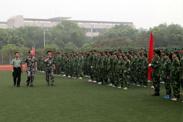 上午9:00整,阅兵式在庄严的国歌声中拉开帷幕。运动场上,经过10天军训的新生精神饱满,列队整齐,等待检阅。院党委副书记胡钟华、副院长孟云生在73022部队副政委钱波陪同下检阅各军训方队。