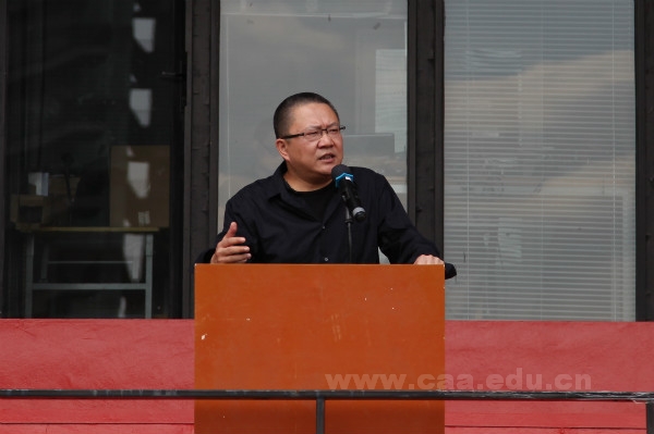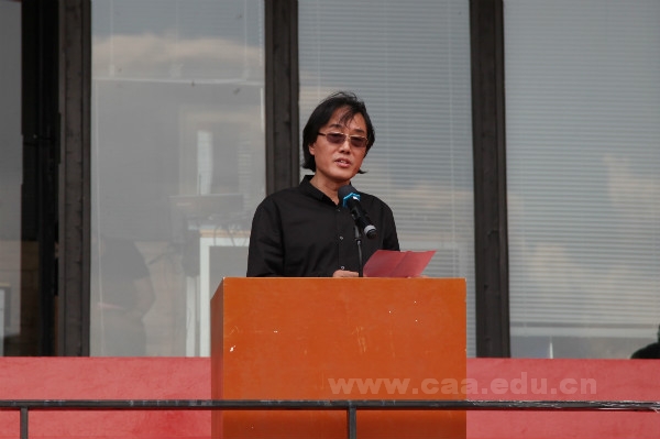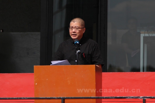 建筑艺术学院院长王澍教授代表教师发言,就为什么要上大学、中国美术学院是什么样的大学、在大学里应该如何学习等问题做了深刻分析。他说,大学是独立思考、自由探索的场所,在这里大家带着自主意识,求知、求道;中国美术学院就是这样的一所大学,你们到了一个非常好的大学来学习。他希望大家要有独立学习的能力、自由探索,孕育贯通自己领域的“浩然之气”。