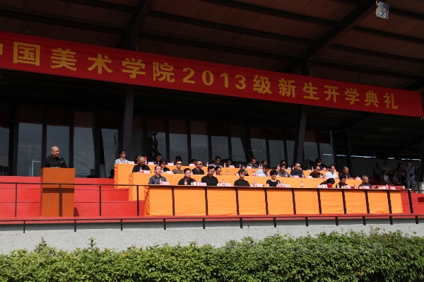 开学典礼在庄严的国歌声中拉开序幕。院长许江发表了题为《青山三神》的讲话。他代表全院的师生和这个家园的学术共同体对2013级的新同学表示欢迎。他讲述了新学子的艺术梦、阐述了中国美术学院这座青山的独特内涵及其八十五年来孕育的学院精神。他说,美院的南山和象山是你们这几年努力攀援的梦想之山。能够站在这里,你们付出了努力,体会到了成长的真正的艰辛和烦恼;能够站在这里,你们穿越了各类培训班的重重包围,战胜了数以万计的竞争对手。今天,在这里见到大家,真好!这是一座有着光荣使命精神的青山,这是一座有着强烈创新精神的青山,这又是一座有着浓郁湖山精神的青山。他从学院的创建者秉持的理念、85年来学院一贯的精神、湖山对学院的养育等阐述了这座青山的内涵。许江院长重点讲述了学院的使命精神、创新精神、湖山精神。他说,这使命精神赋予我们深厚的历史感,也赋予我们某种深刻的自主意识。湖山精神不仅每日里让我们感受湖山与心灵之间的眺望,也将带给学院共同体以一种特殊的品质。这种品质就是居敬。我们学院的谱系中始终有着一种置身艺术的十字街头而趋于新的实验精神。但要真正了解这座青山,认识它的内涵,今天还仅仅是开始。使命精神、创新精神、湖山精神正是我们学院毕业正装的冠帽上的三条边。四年以后,你们将头顶这三角冠盖,步入毕业的殿堂。那个时候,你们将对我的今日之言有全新的理解,学院这三个精神的内涵不仅将顶在头上,而且将融化在你们青春的记忆中,融化在一代人心灵的成长里。