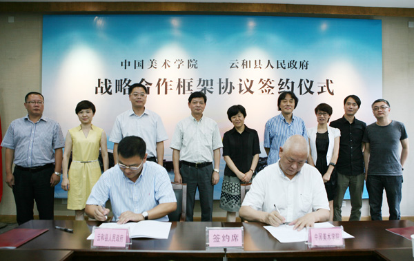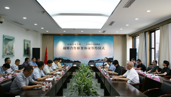 7月11日,中国美术学院与云和县人民政府战略合作框架协议签约仪式在我院召开。我院党委书记钱晓芳,党委副书记、资产经营有限公司董事长傅肃琴,副院长王赞,丽水市副市长戚永远,云和县县委书记张建明,县委副书记、县长叶旭勇,县委常委、常务副县长李一波,云和县县委常委、县委办主任陈建伟及组织部、宣传部等10个部门负责人和我院宣传部、研创处、设计艺术学院、建筑艺术学院等部门负责人近四十人出席了会议。会议由资产经营有限公司总经理余伟忠主持。
