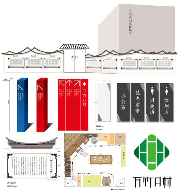 竹节为主体的村标,竹纹状的办公室指示牌,灰砖搭建的翘角檐,竹节状的门饰条以及中间若隐若现的方胜纹,无一不是取自万竹口村的老建筑中,这样的设计元素,使得村里的村民们非常乐于接受。如今已是87岁高龄的陈士元老人,每天都会坐在办公楼门口的石凳上张望,看着根据这些元素设计建造的文化礼堂,他赞不绝口:“这些都是我们生活中最常见的,也是身边的东西,看着就亲切。”