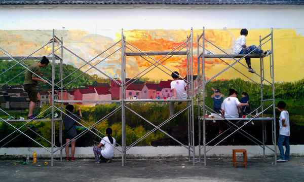 暑期社会实践团队创作墙绘作品