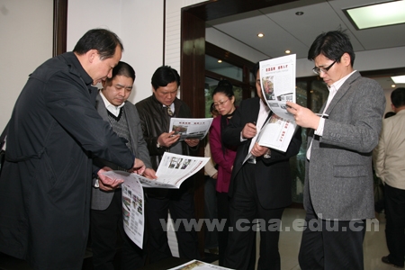 黄岩区领导一行对我院在出色完成教学任务的同时服务社会,对文化创意产业作出诸多贡献表示振奋,并提出黄岩的文化创意产业的发展以及传统生产企业在转型升级中与我院合作的意向。