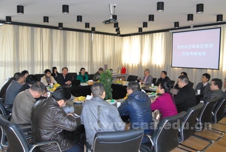 3月23日上午,以台州市黄岩区副区长卢旺忠带队,副区长吴继业,区政协副主席、区委统战部长杨小崇及区相关部门负责人和文化创意产业商会会员企业代表一行来杭,来我院考察文化创意产业,在副院长宋建明,统战部、创意产业办公室,实验教学管理部相关领导陪同先后参观了我院象山校区、实验教学管理部、中德学院2011毕业生展,考察了之江文化创意产业园凤凰•创意国际园区、白马湖生态创意城等,并就我院创意文化产业的发展在实验中心会议室与我院老师展开经验座谈会,互动交流。