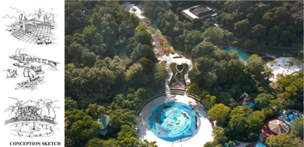 项目概况:杭州少年儿童公园位于中国杭州西湖风景名胜区。场地高差达40m。这里原来是桂花文化公园,中轴对称的古典风格与少儿公园不协调。本次改造面积 2.7公顷,主要包括水剧场、撒欢坡、萌宠园、水乐园和岩石园。本项目以让儿童回归自然为主旨,充分保留和利用现状的山林和泉水资源进行改造,探索一条传统公园低成本有机更新的途径。