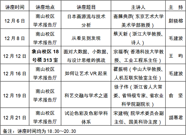 本期研究生学术周系列活动以“艺术与科技”为主题,由系列学术讲座、研究生学术沙龙活动、“走近实验室”系列活动、“科艺融合”导学案例展示四大版块组成。