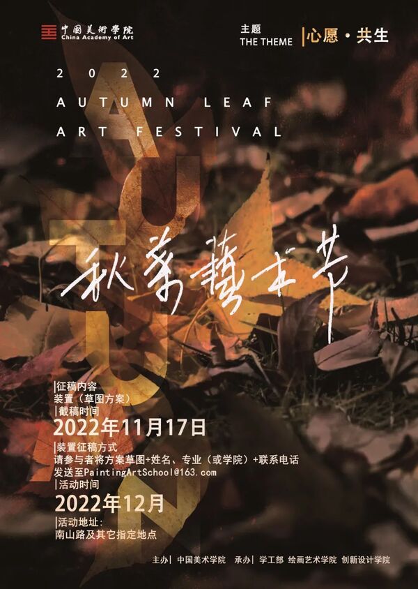 中国美术学院2022年秋叶艺术节现向美院师生及社会征集作品方案。你出心愿,我们共同实现!