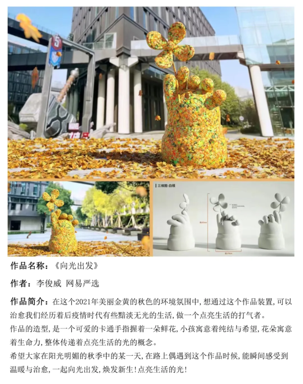 ·落叶装置投稿入选作品均会制作成实物。我们将提供技术指导,且会获得秋叶艺术节的证书