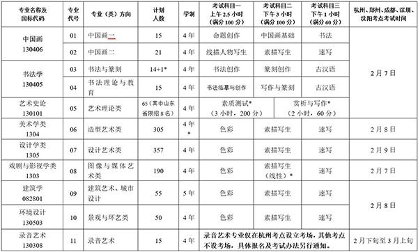 1、杭州南山校区、象山校区各专业(类)招生计划、考试科目、考试时间安排:
