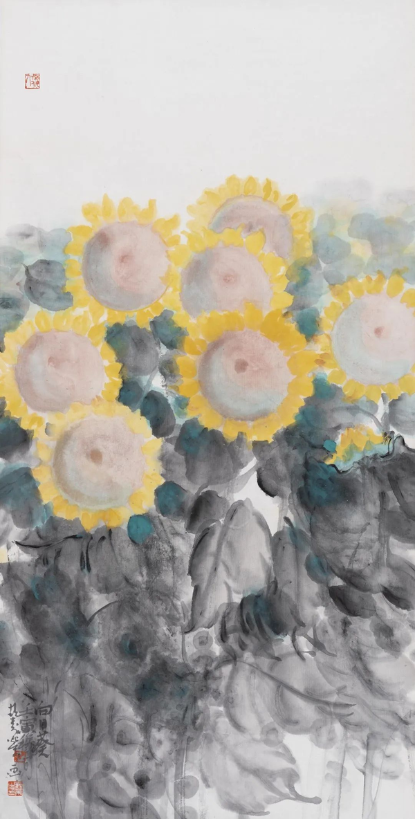 《向日葵》胡寿荣中国画(137cm x 68cm)