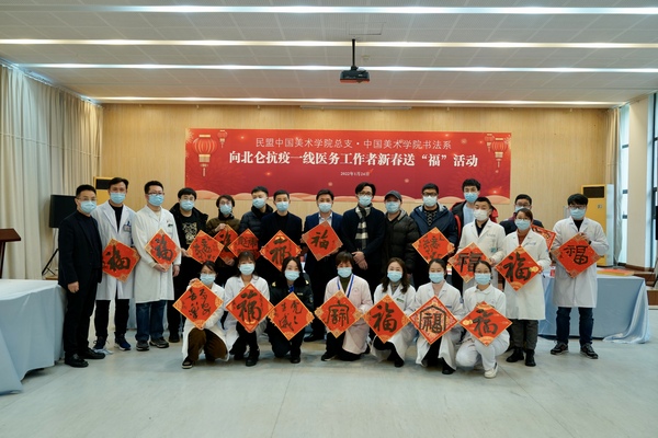 1月24日,在学校民盟总支副主委、中国画与书法艺术学院副院长、书法系主任沈乐平教授的带领下,中国画与书法艺术学院书法系部分教师、博士生代表一行8人,走进宁波北仑区卫生健康局,向北仑抗疫一线医务工作者新春送“福”。
