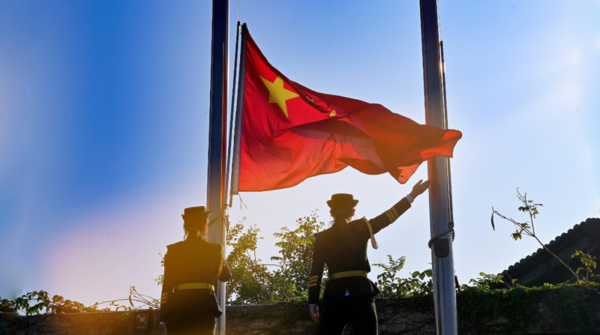 早晨8点,朝日初升,五星红旗在阳光下更加鲜亮,也象征着我们的新中国在72年风雨洗礼下愈发朝气蓬勃、愈发坚不可摧。