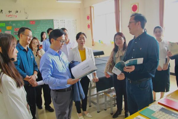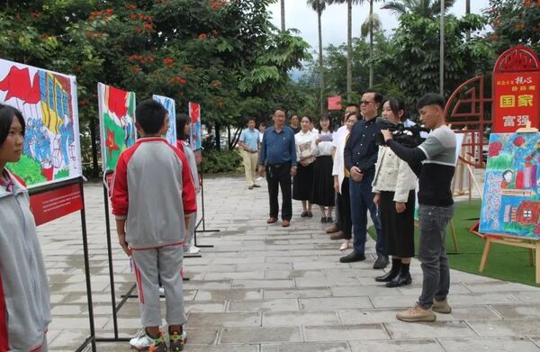 抵达景东职中后,孙旭东听取了学校情况的介绍和历年支教团所取得的成果汇报,参观了景东职中建党百年主题创作展、中国美术学院支教成果展厅及职中书画社,并与县领导、教育体育局、团县委、职中相关领导和支教团成员们亲切座谈。