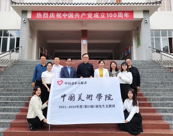 中国美术学院于2014年成立研究生支教团,八年来,共选派了18名同学赴云南景东开展支教活动。支教团在学校各级领导的关心和支持下,在景东县委县政府、县教育体育局、团县委的指导和帮助下,秉承“行健、居敬、会通、履远”的美院校训,坚持“扶贫先扶志,扶贫必扶智”的理念精神,积极投身基础教育工作,开展“美美讲堂”、“设计扶贫”等特色品牌活动,在教书育人、扶贫扶志、宣传引领等方面作出积极贡献。