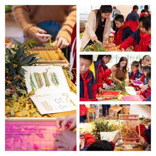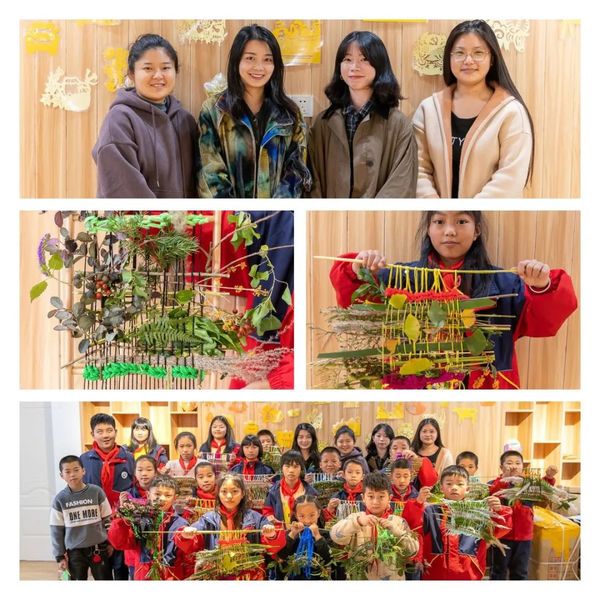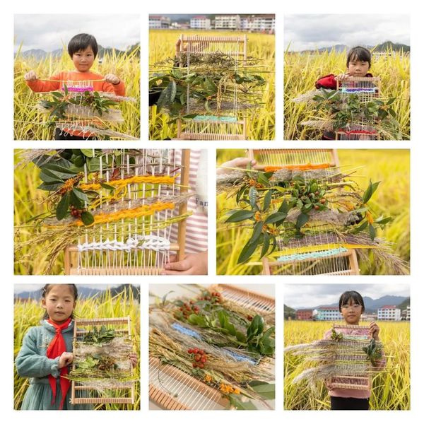 志愿者助教周美汀:在为期两天的支教活动中,我和小朋友们一起完成了从植物采收到架上编织机,最后完成植物编织的全过程,小朋友们惊讶于日常生活中常见的植物居然能编织出这样有趣的艺术作品,也因此非常热情地在课堂上、在田野里进行个人创作,我在其中看到了很多闪光的艺术灵感也为此感到振奋。希望未来还能为乡村美育工作贡献一份力量!