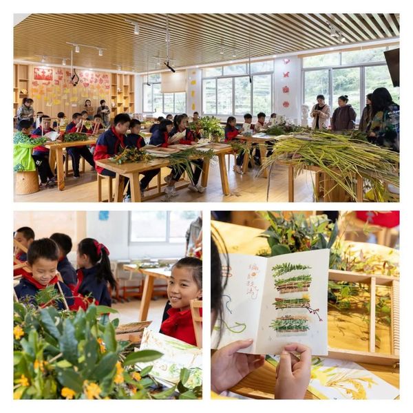 志愿者助教杜晓萌:在乡间的稻田里伴随稻香虫鸣编织秋色是前所未有的新奇体验。小朋友们的创造力和学习能力让人惊叹,每个人都在认真学习着编织技法,我看到了另一种对于美的理解,对于课堂的真诚,愿每一个孩子学有所得。