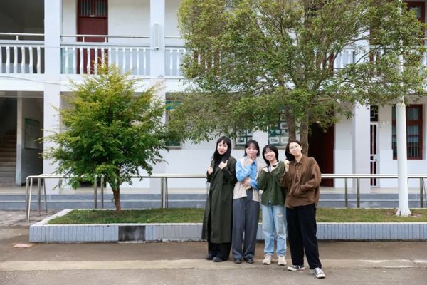 中国美术学院的研究生支教老师周紫晨与志愿者助教杨宵、邱榆芳、夏丽芷