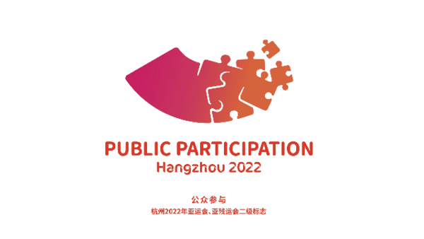 公众参与标志:传达着互相铆合、互相链接、集聚力量的图形意象,象征凝聚你我、合作无间的亚运精神,将被应用于亚运进学校、进社区(村)、进社团、进机关(企业)等相关的活动。