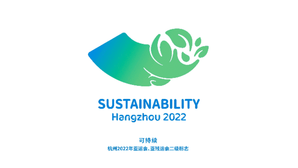 可持续标志:以拟人手法描绘人与环境的共生关系,寓意着人与自然相互依存,共生发展,将被应用于城市景观、赛场及其周边环境建设等体现“绿色亚运”的场景。