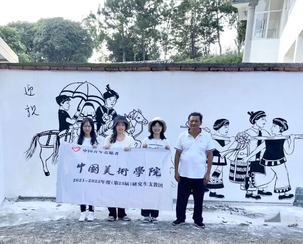 2021年9月20日,中国美术学院第二十三届研究生支教团应山冲村民委员会的邀请,前往山冲村进行墙画修补与创作,推进文明乡村建设。